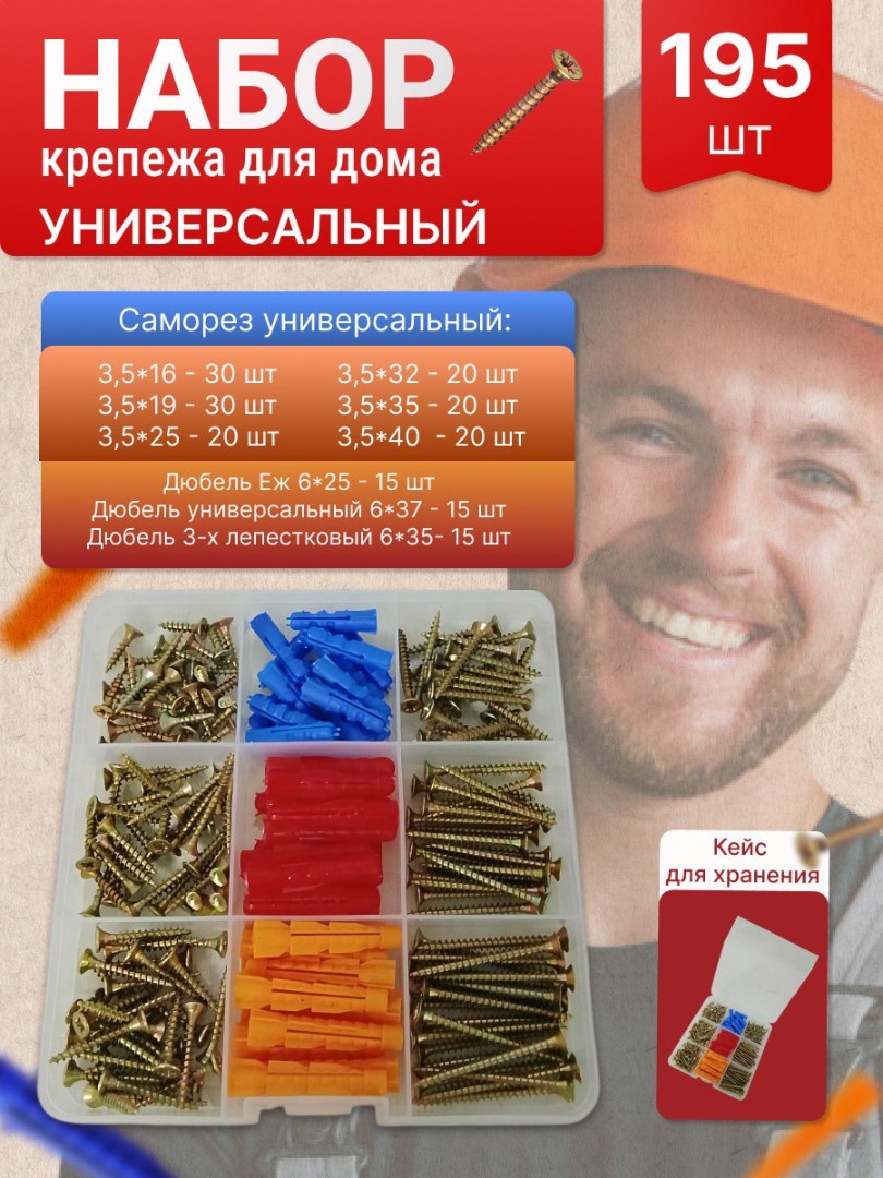 Набор крепежа Универсальный для дома - 195 шт